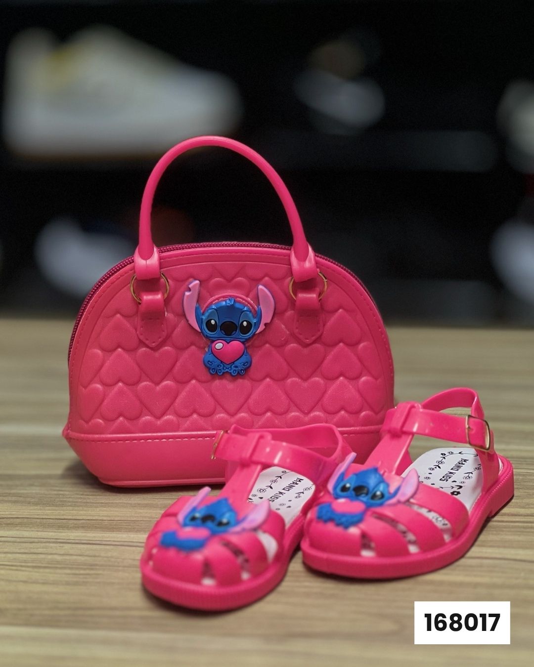 A sandália, com design exclusivo Stitch, apresenta um visual charmoso e sofisticado que se adapta a diversas ocasiões. Seja para um passeio casual no parque, um almoço com as amigas ou um evento especial, este kit complementa o seu look com um toque de originalidade.