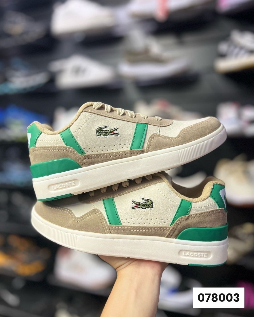 Sapatenis Lacoste T-Clip Bege Verde Camurça